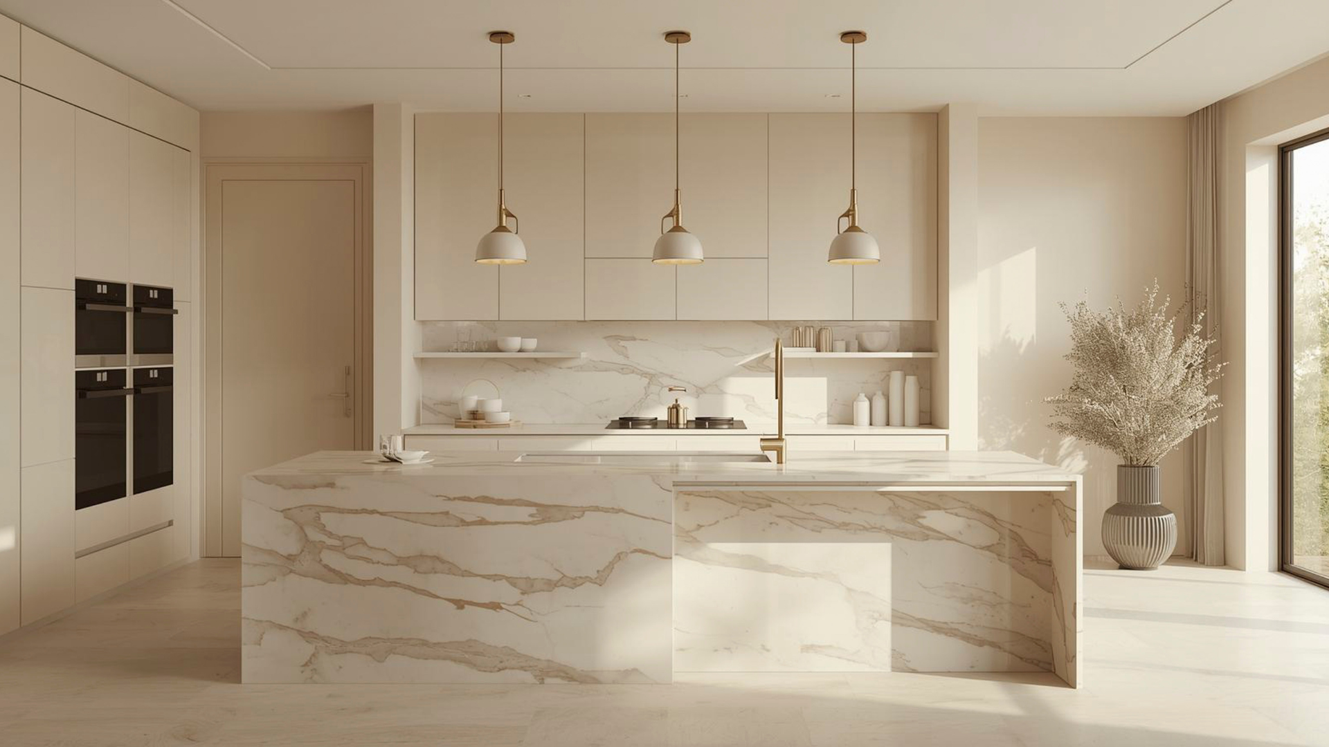 Countertop and material selection. In an open-concept layout, the kitchen is always on display. That makes material choice more important than ever. Durable, low-maintenance surfaces like engineered quartz and natural stone hold up to daily use while looking polished from across the room — no more hiding scuffed laminate behind a closed door.